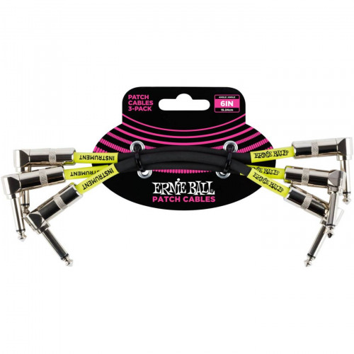 ERNIE BALL 6050 - набор из 3-х инструментальных кабелей с угловыми джеками, длина 15 сантиметров, цвет черный.